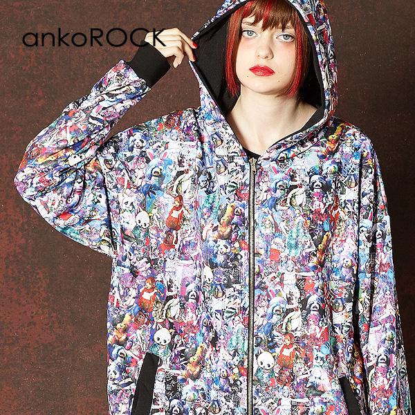 予約 Ankorock アンコロック パーカー メンズ ジップパーカー レディース ユニセックス 服 ブランド 大きいサイズ ビッグシルエット オーバーサイズ ロング丈 総柄 長袖 ジップアップパー